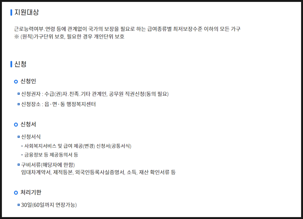 기초생활수급자 생계급여 안내