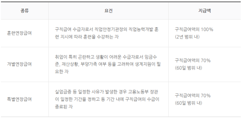 참고로 위 각각의 요건에 해당하는 분들은 수급기간을 연장해서 추가로 받을 수 있다고 하니, 해당되는 급여가 있는지 살펴보시면 좋을 것 같습니다.