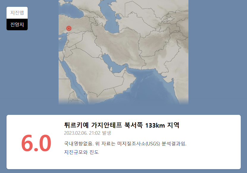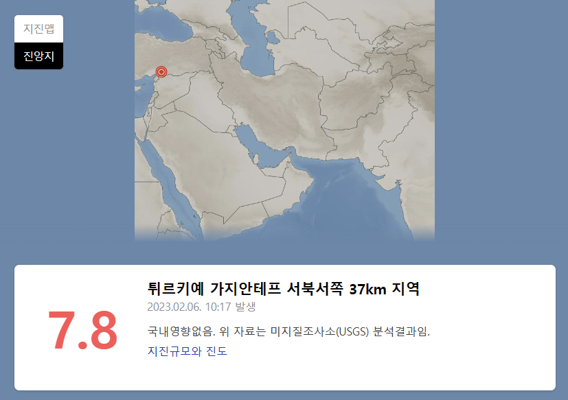 터키 지진 발생현황